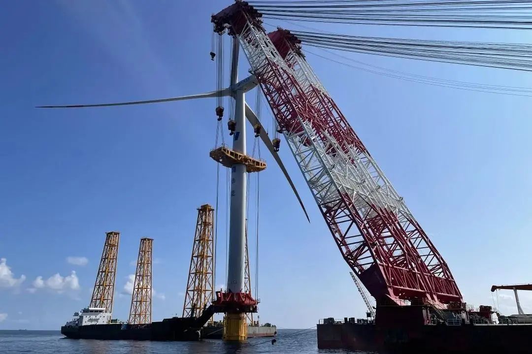 巨力索具承制的風(fēng)機(jī)整體吊裝產(chǎn)品在山東半島南4號海上風(fēng)電項目首吊成功