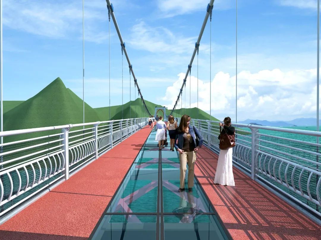 青海坎布拉景區(qū)人行懸索橋全程跨度110米,橋梁寬6米,人行道凈寬5米。大橋位于李家峽水庫入口附近,橋梁連接水庫入口兩岸,兩端連接旅游人行棧道,坎布拉丹霞地貌多以奇峰、峭壁為其主要地貌特征,生態(tài)環(huán)境脆弱,大橋兩岸地勢陡峭,工程地質(zhì)條件極為復(fù)雜,對產(chǎn)品要求極高。